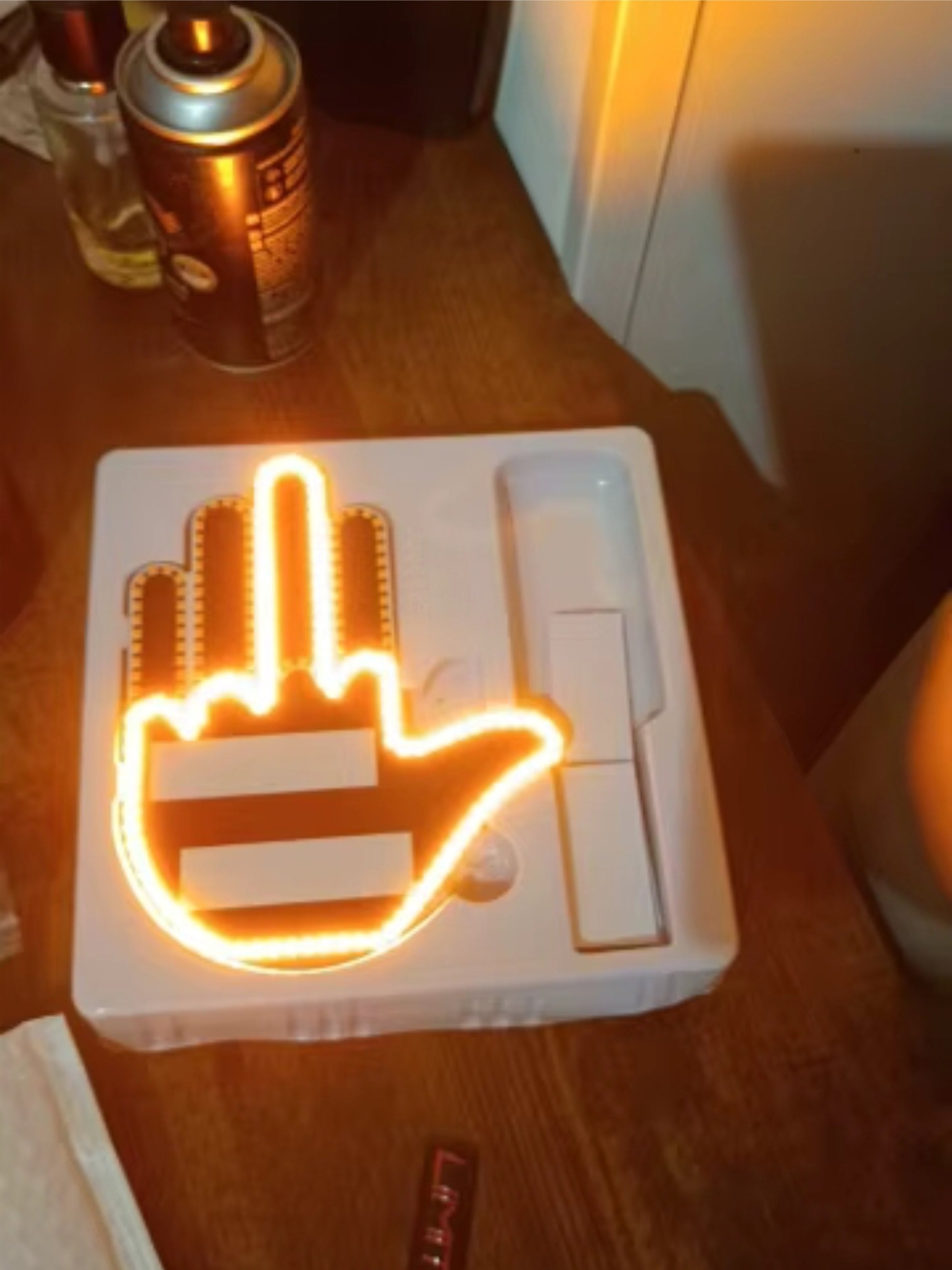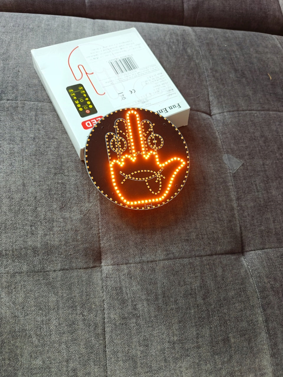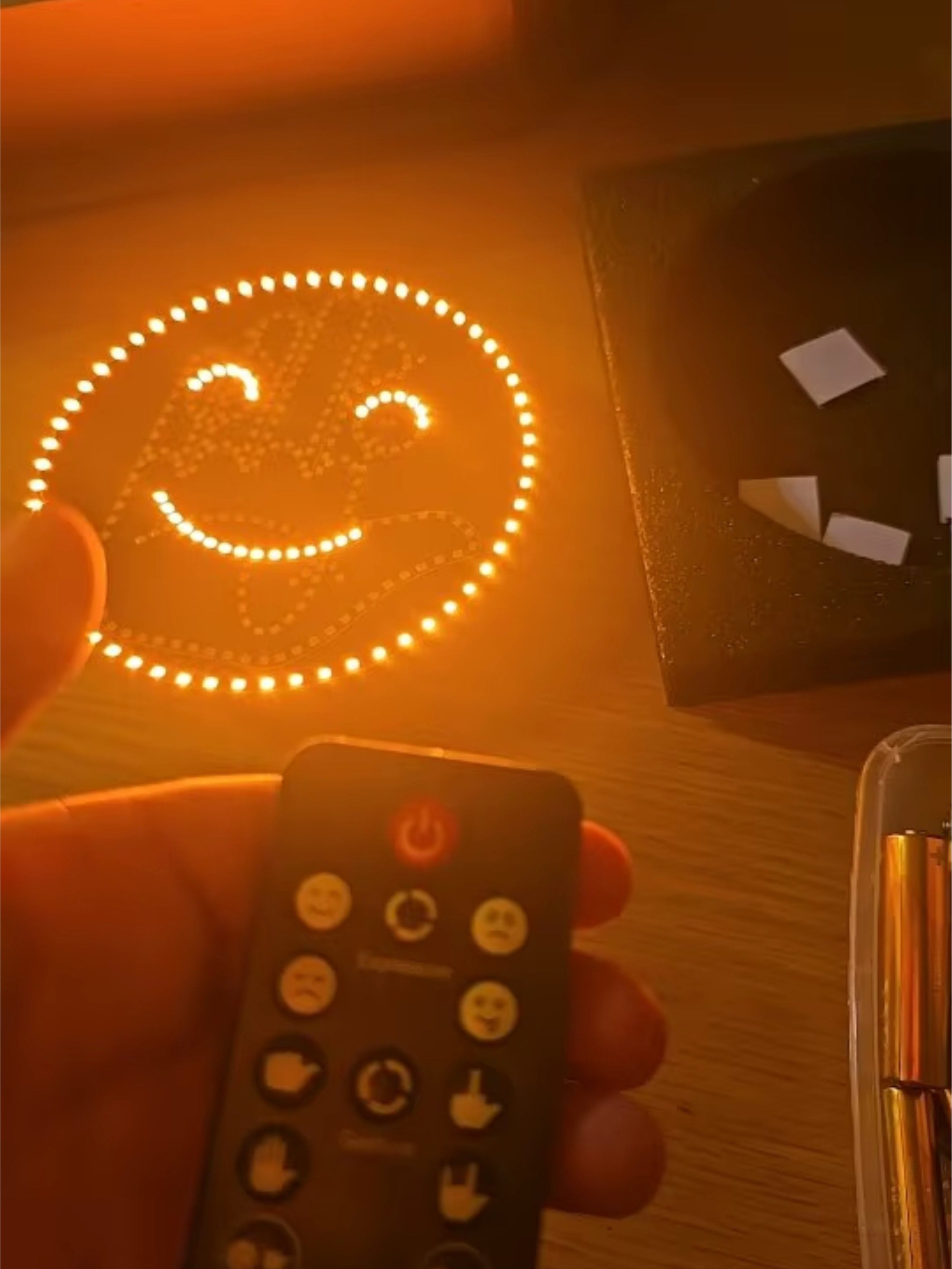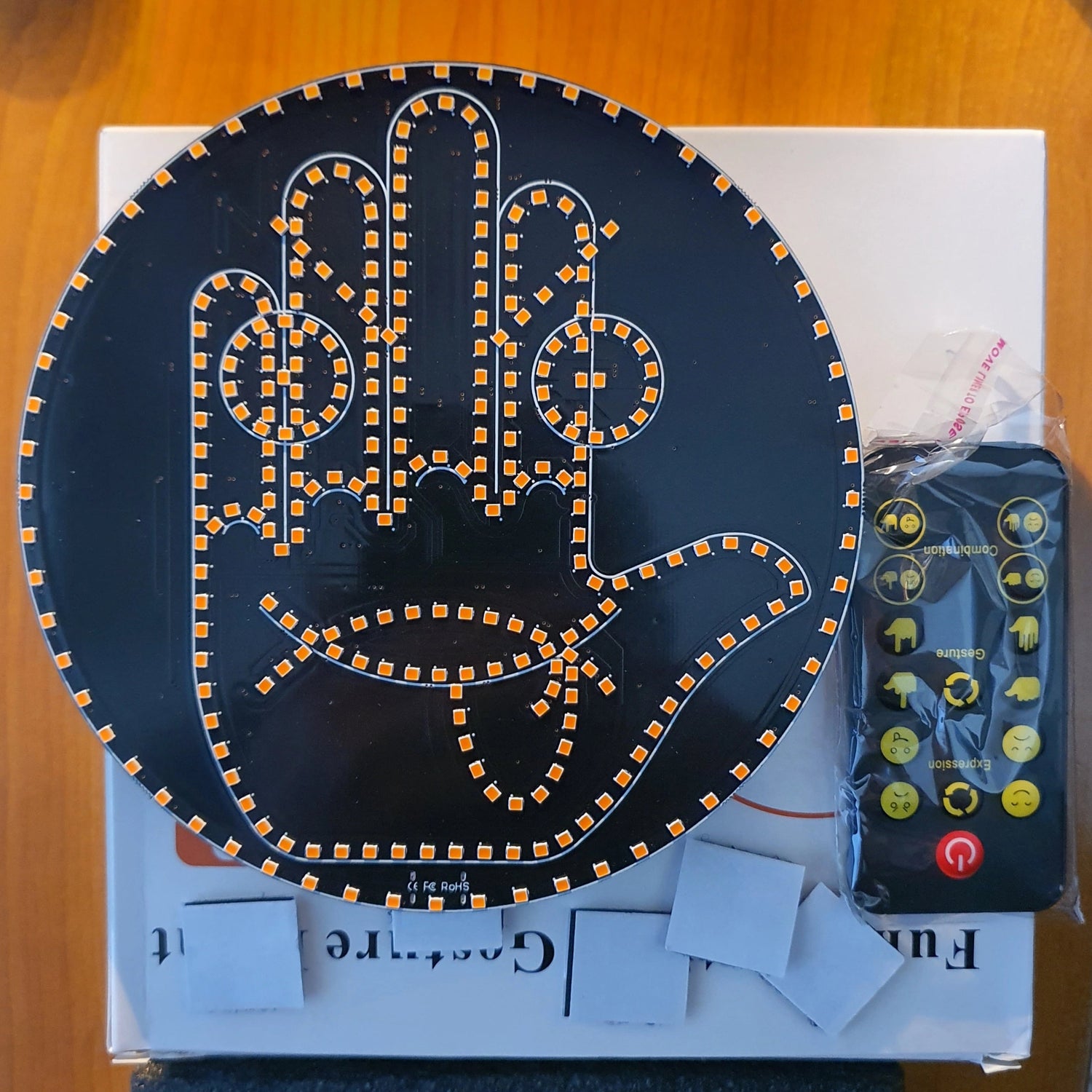 W zestawie znajdziesz pilot, którym jednym kliknięciem zmienisz wyświetlany gest. Interfejs jest tak prosty, że obsługa tego urządzenia jest łatwiejsza niż ustawienie zegarka w aucie (a to już coś!).